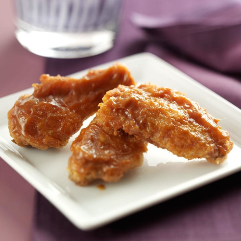 Dans une petite casserole, mélanger les ingrédients de la sauce.Cuire et mélanger à feu moyen pendant 1-2 minutes ou jusqu'à ce que le mélange soit lisse.Verser sur les ailes de poulet et remuer pour bien enrober.Servez immédiatement.