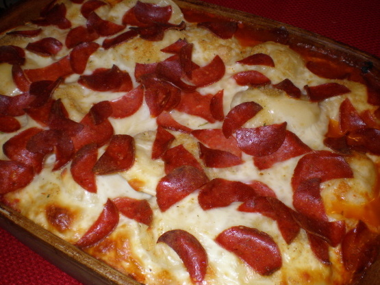 Enlevez le papier d'aluminium et faites cuire à découvert encore 10 minutes ou jusqu'à ce que le fromage et le pepperoni soient dorés.