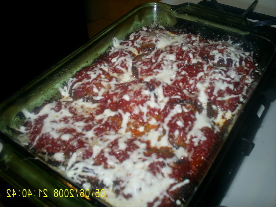 Mettez une couche d'aubergines sur la sauce et mettez 0,33 le fromage, plus de parmesan si vous le souhaitez, 0,33 plus de sauce, puis répétez l'opération en veillant à bien terminer avec la sauce.