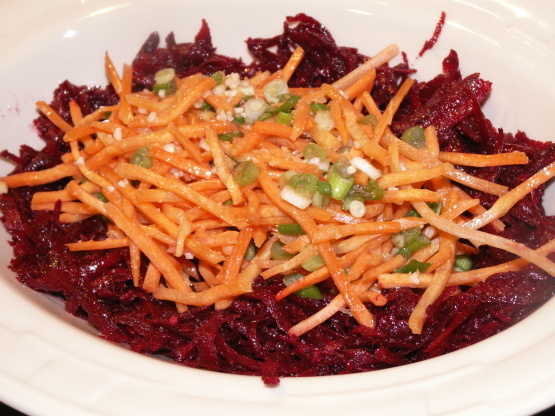 Les couleurs rouge et orange des betteraves râpées et des carottes en font une magnifique pièce maîtresse avec une texture croquante et une saveur acidulée.