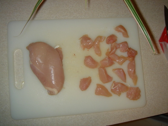 Coupez vos poitrines de poulet en lanières, puis en petits cubes.