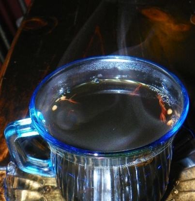 Ajoutez la cardamome et le safran à la bouilloire de café et faites bouillir une fois avant de servir dans de petites tasses.