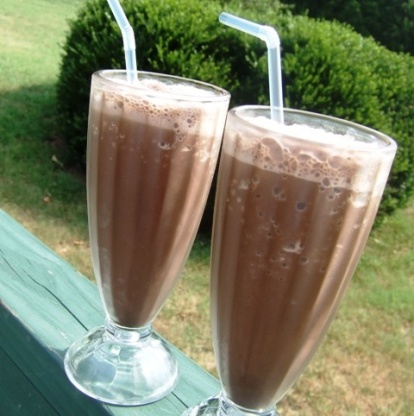 Mélanger le tout dans un mélangeur et mélanger jusqu'à ce que la glace soit broyée et que le shake soit épais..