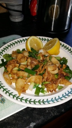 25 minCalamarjeune calmar nettoyé, pétrole, sel de mer, poivres, farine, graines de chili, onion,croustilles chinoises - calamars frits au sel et au poivre -