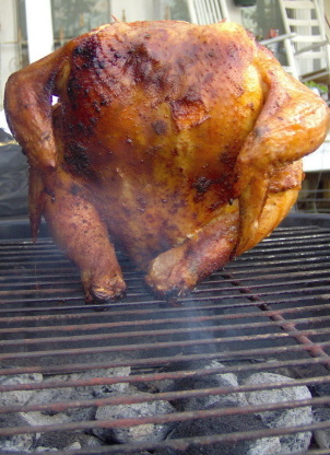 Une bonne recette de poulet au canette de bière.Le frottement Memphis le rend vraiment bon.Les instructions incluent des instructions pour les barbecues au gaz et au charbon.De Bon Appetit.