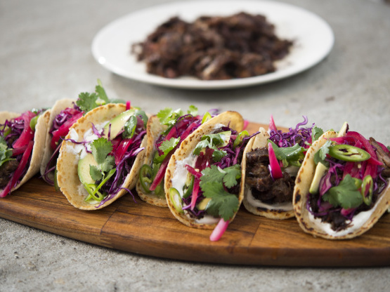 Si la viande est très grasse, vous devrez peut-être continuer à drainer la graisse sous forme de chips de porc.Assaisonner au goût avec du sel et du poivre, et servir dans des tortillas avec du chou, de la crème sure, des oignons rouges marinés, de la coriandre, des avocats et des piments serranos.