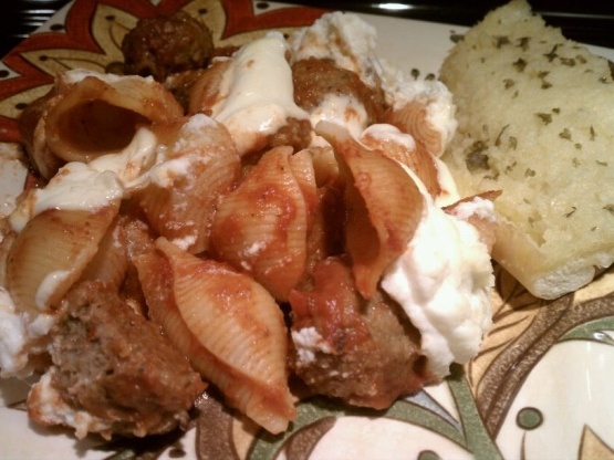 Incorporer la sauce pour pâtes, les boulettes de viande et la sauce tomate. Transférer dans un plat allant au four de 9 x 13 po.