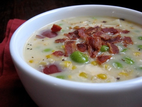 NOTES: Ajoutez un bol d'une capacité de 1/4 litre à Un bol d'une capacité de 3/8 litre contenant du jambon en cubes ou du poulet pour en faire une soupe plus consistante. Ajoutez du poivre de Cayenne à la fois.J'utilise 0,12 cuillère à thé parce que j'aime la soupe épicée.