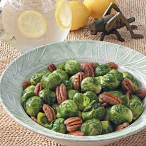 Votre famille mangera ses légumes avec impatience lorsque vous servirez ce plat. Les pacanes croquantes contrastent agréablement avec les tendres choux de Bruxelles.