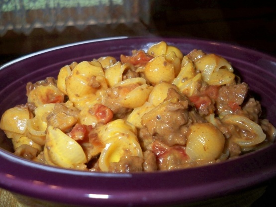 Josh aime ses tomates et son mandrin moulu avec des pâtes à rotini, Jen aime les siennes mélangées avec du Velveeta Shells et du fromage. Celle-ci est pour Jen, son plat à gratin préféré.