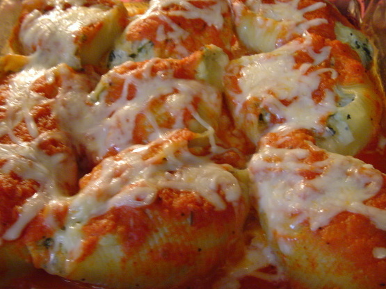 (Si vous ne pouvez trouver que de petites coquilles, posez-les simplement sur le fond de la cocotte, recouvrez-les d'une couche de garniture, d'une couche de sauce et saupoudrez de parmesan).