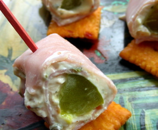 Ok, ne laissez pas le titre vous effrayer.Ce sont d'excellents amuse-gueule même si les ingrédients sont un peu étranges.Je les fais tout le temps pour presque toutes les occasions pour lesquelles nous avons besoin d'un "collation" intéressant. Les enfants les aiment vraiment à cause des pickles.Assurez-vous que lorsque vous les enroulez, vous roulez bien avant d'insérer un cure-dent.