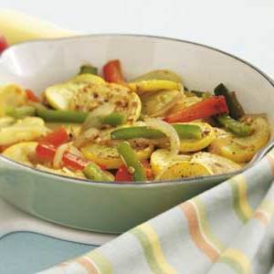 Anna Stodolak envoie son rapide plat d'accompagnement végétarien qui saura ravir tous les dîners.Anna utilise des courges jaunes fraîches et des poivrons de son jardin de Volant, en Pennsylvanie.