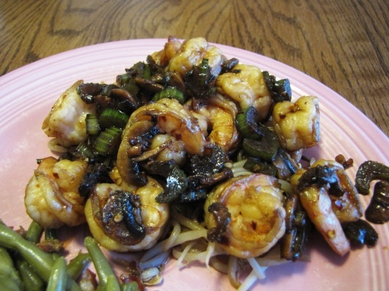Crevettes sautées au gingembre et aux champignons