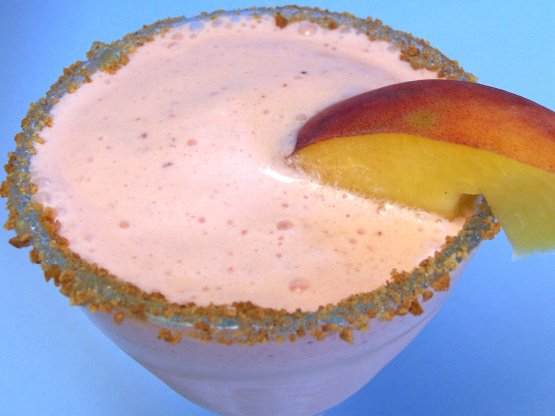 Voici un autre dessert dans un verre! Pour Charlotte et tous ceux qui aiment leurs pêches et leurs boissons.Pour tout mettre en avant, n'hésitez pas à ajouter du gingembre confit.