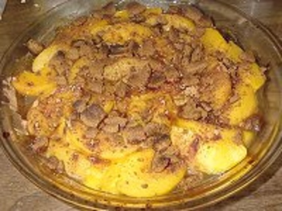 Faites et partagez cette recette de Crumble aux pêches et au gingembre.