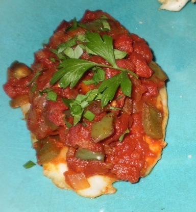 Faire revenir l'oignon, l'ail et le poivre dans une poêle pour les ramollir.Ajouter les tomates et le paprika et laisser mijoter environ 5 minutes, jusqu'à ce que la sauce épaississe. Goûter et saler et poivrer si nécessaire.