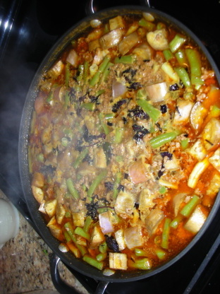 40 minThaïlandaisaubergines en dés, sel, bouillon, des haricots, chou, onion, gingembre, Ail, Citronnelle, coriandre, bananes, tomates, lait de coco, coriandre, riz,ratatouille thaïlandaise à la noix de coco -