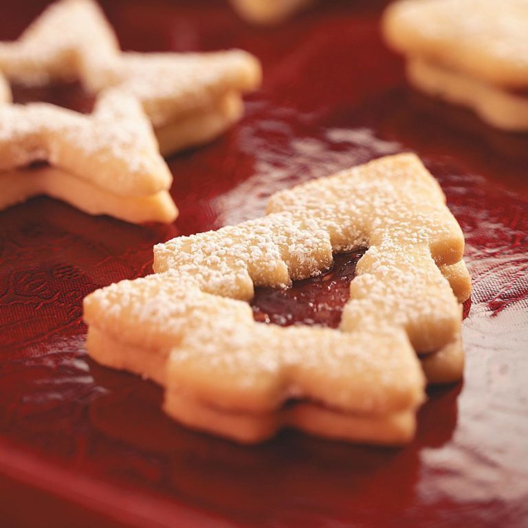 Une jolie confiture de framboise jaillit des biscuits sablés au beurre pour une gâterie festive.Faites-les toute l'année avec différentes formes de emporte-pièce. — Taste of Home Test Kitchen