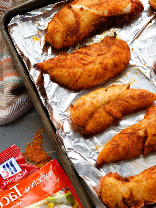 Faites et partagez cette recette de doigts de poulet taco cuits au four.