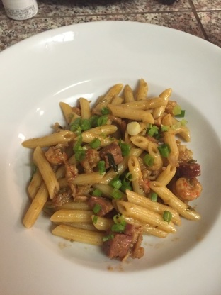 C'est une vieille recette d'Uglesich en Nouvelle-Orléans.Je l'ai obtenue il y a plusieurs années. C'est une alternative plus rapide que de faire une étouffée au cas où vous seriez à court de temps.Grand avec du riz ou des pâtes, aussi comme je le fais habituellement ajoutez une demi-livre de tasso haché lorsque je fais dorer le céleri et les oignons, histoire de donner un peu plus de viande au plat.