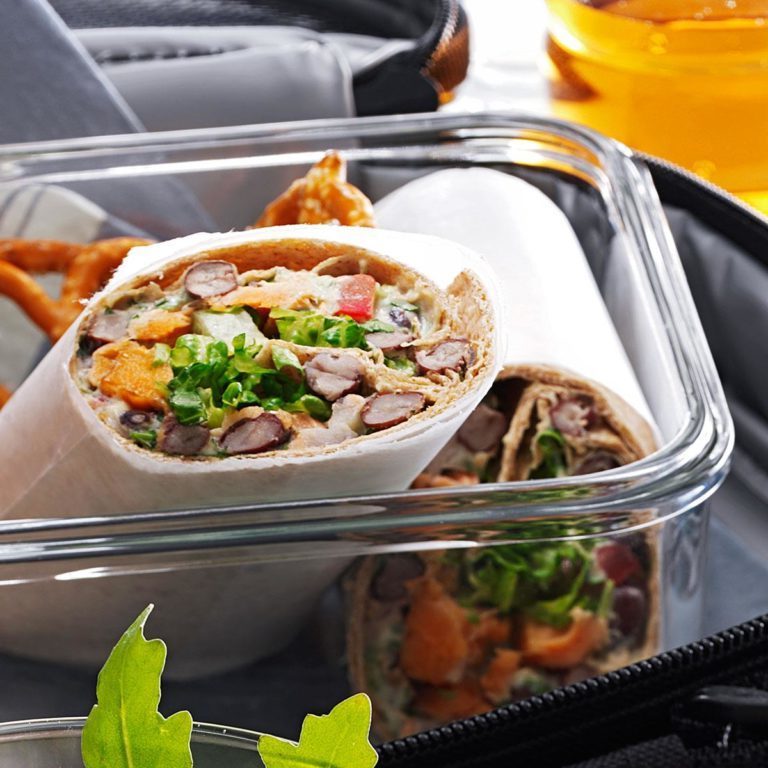 Voici un emballage sain contenant peu de graisses saturées et plein de nutriments merveilleux comme l’avocat, les haricots noirs et le saumon fumé. C’est super facile et parfait pour un déjeuner rapide. - Jess Apfe, Berkeley, Californie