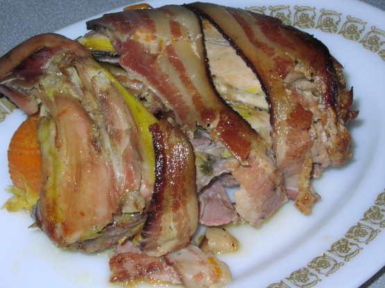 Envelopper la poitrine avec le bacon et mettre le faisan dans une mijoteuse.
