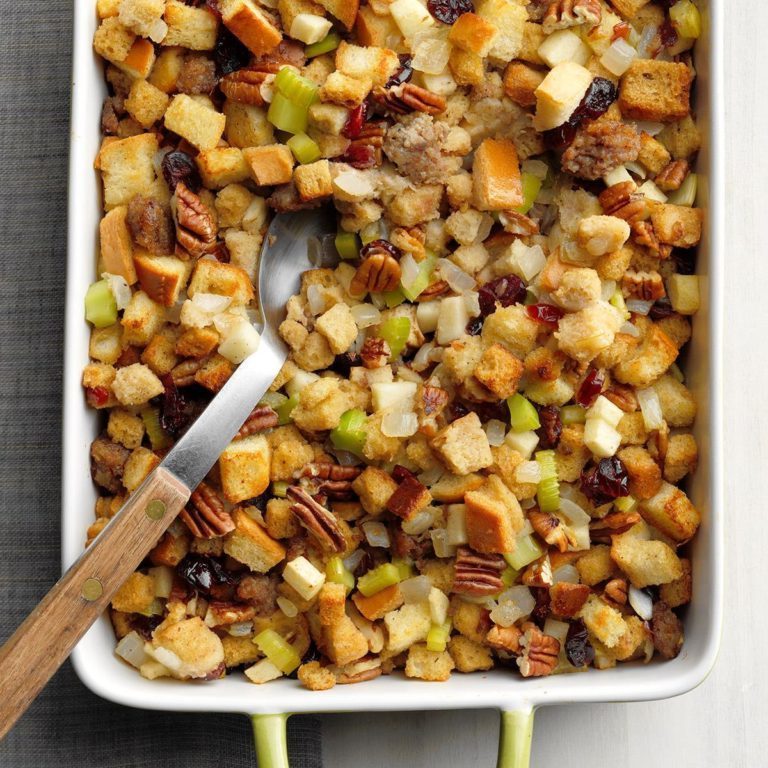 Bien que j'adore la farce, ma famille ne l'aimait pas trop - jusqu'à ce que je trouve cette recette. J'ai ajouté quelques touches personnelles et maintenant, elles l'engloutissent. Les baies et le porc en font vraiment quelque chose de spécial. "- Robin Lang, Muskegon, Michigan