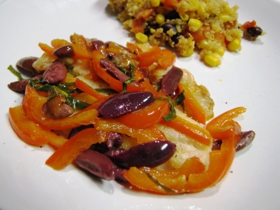 Filet de poisson au beurre à l'ail et aux olives noires