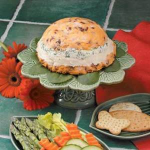Démouler dans une assiette de service; garnir d'épinards supplémentaires. Servir avec des craquelins et des légumes.