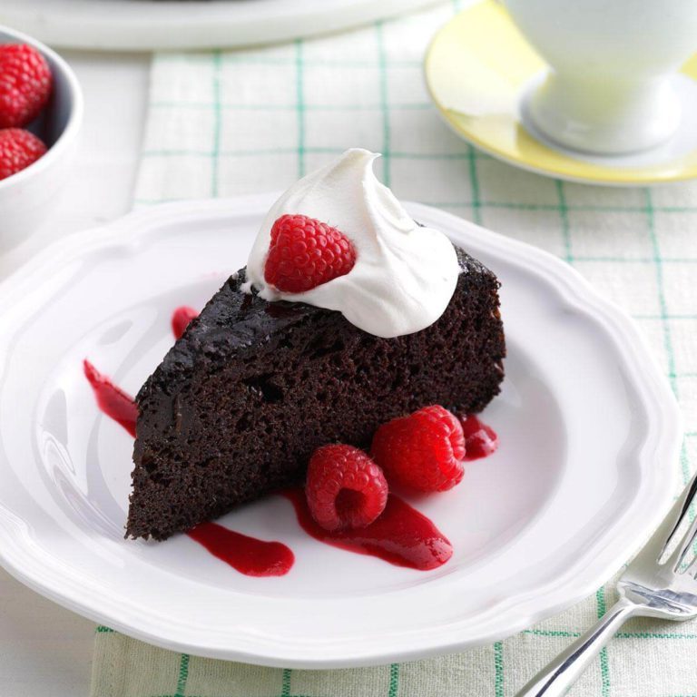 Les gens sont étonnés que ce gâteau succulent, moelleux et tendre soit un dessert léger. J'aime la riche saveur de chocolat et la sauce fruitée. — Mike Pickerel, Columbia, Missouri
