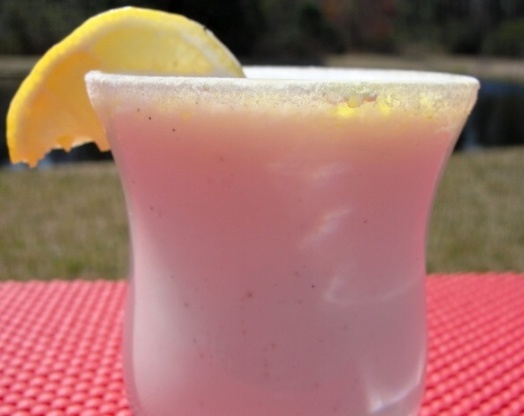 Mélangez de la crème glacée à la vanille et de la limonade avec un shake au citron. Ajoutez de l'éclat aux bords du verre avec des bonbons au citron concassés et du sucre. Je devine à l'époque parce que je ne sais pas combien de temps il faudra pour écraser les bonbons.