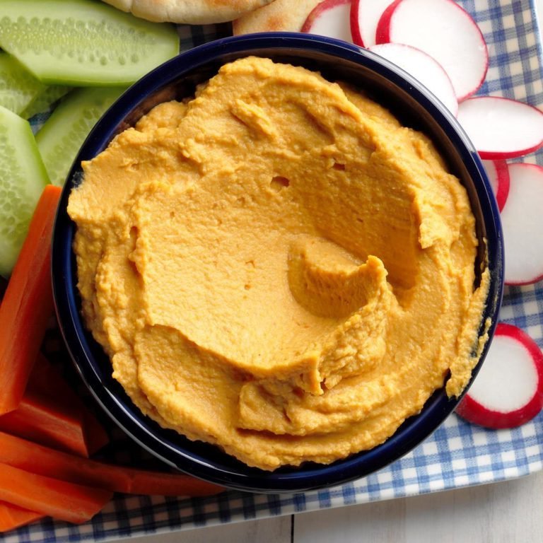 Nos économistes locaux confèrent à l'houmous traditionnel un attrait automnal grâce à l'ajout de citrouille en conserve.La sauce au piment fort procure la quantité de chaleur souhaitée. — Le goût de la cuisine d'essai à la maison