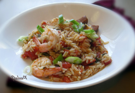 Dans un four hollandais, faites chauffer l'huile à feu moyen-vif.Sautez les oignons émincés, l'ail émincé et le bouillon jusqu'à ce que les légumes soient tendres.Ajoutez les saucisses et le reste des ingrédients SAUF les crevettes.Amenez à ébullition, couvrez et laissez mijoter 20-25 ajouter les crevettes et mélanger pour cuire pendant 5-7 minutes.Servez immédiatement..