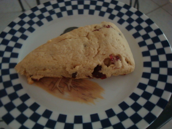 C'est comme les scones qui sont vendus dans une boulangerie Mabey encore mieux! --- des pépites de chocolat, des raisins secs ou des fruits secs peuvent être utilisés à la place des myrtilles fraîches.Si désiré, arroser le dessus de chaque scone chaud de recette120835 Je ne peux pas promettre les mêmes résultats en utilisant de la crème sure faible en gras ou sans gras ou en utilisant un shortening au lieu de beurre