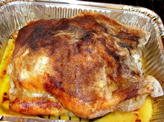 BTW ~ cheesecloth peut avoir l'air "brûlé" ne vous inquiétez pas - la dinde ne sera pas - ne couvrez pas pendant la cuisson
