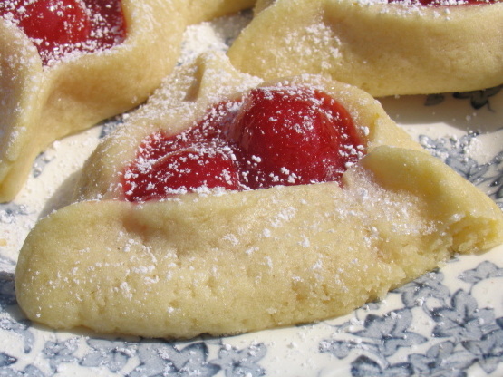 Nous mangeons du hamentashen à la fête de Pourim. Ce sont des biscuits en forme de triangle parce que Haman avait un chapeau en forme de triangle. Au collège, il m’a toujours envoyé une boîte. Maintenant, je les prépare moi-même.Hamentashen est traditionnellement rempli de garniture aux graines de pavot ou de pruneaux, mais mon père en fabrique d’autres. .