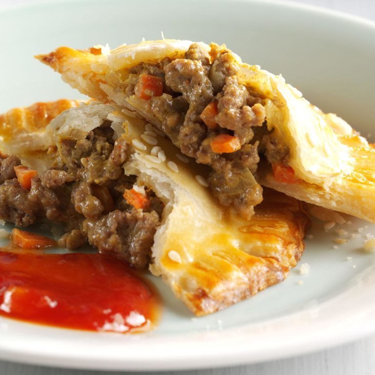 Ma famille aime les saveurs marocaines. Je prépare donc des empanadas avec des conserves de bœuf et d’abricots dans une pâtisserie. Voici une tarte feuilletée pour les mains avec une sauce piquante. - Arlene Erlbach, Morton Grove, Illinois