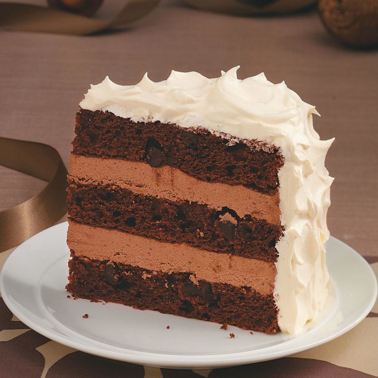 Placez la dernière couche de gâteau sur une assiette de service; garnir avec la moitié du mélange au chocolat.Répéter les couches.Trouver avec la couche de gâteau restante.Groster le dessus et les côtés du gâteau avec la crème fouettée.Réfrigérer au moins 2 heures avant de servir.