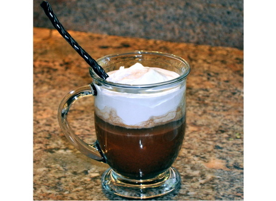 Mettez le café dans un verre pilsner.Séparez soigneusement le mélange de crème avec une cuillère.Ne mélangez pas.