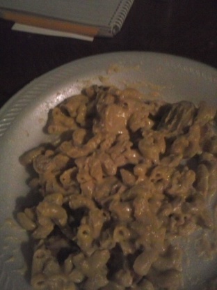 Most of the time I simply combine pasta, cheese sauce, mushrooms, and sausage in a large serving bowl and eat it extra creamy.