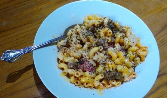 C’était le tour régulier des dîners qui grandissaient et nous le faisons tous encore. Il peut être épicé avec de la poudre de chili ou d’autres épices.Aujourd'hui, longtemps après mon entrée dans cette recette, j’ai appris, probablement, où ma mère l’avait apprise .Mac n Cheese with Tomatoes a été servi dans les automates de Philadelphie dans les années 1920 et 1930. Ces cafétérias dans lesquelles vous déposez des pièces et ouvrez une fenêtre.