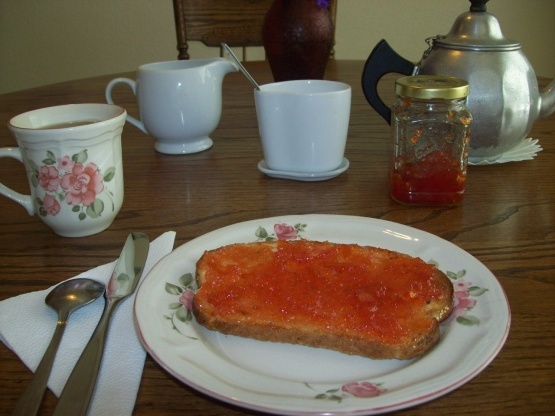 Cette recette a été imprimée dans le Jerusalem Post la semaine dernière et provient de Lynette Levius de Netanya, Israël.Je ne l'ai pas encore essayée, mais je prévois de créer un lot ce week-end.Février 2010: Depuis que j'ai posté cette recette plusieurs fois par hiver (l'hiver est la saison des agrumes ici). C'est une recette merveilleuse, totalement irréprochable, comme l'indique le titre. C'est excellent pour le pain grillé et constitue un cadeau merveilleux. J'aime particulièrement un mélange 50/50 d'orange / clémentine, une saveur d'agrumes avec une couleur orange intense.