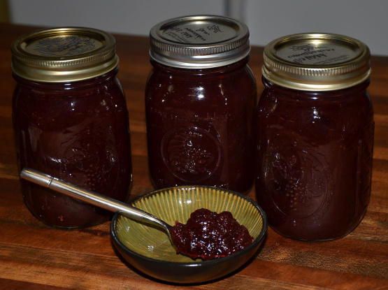 Avec 24 kilogrammes de muscadines et de scuppernongs à traiter, j'ai essayé beaucoup de recettes différentes. Cette recette a été élue meilleure par tous les membres de la famille.Elle a le juste équilibre entre les saveurs de raisin et de citron et est magnifiquement réglée. pulpe and hulls.Le temps de cuisson ne comprend pas le traitement des pots dans le bain d’eau bouillante.