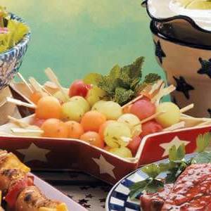 Pour accompagner chaque repas de l'été, notre cuisine test recommande ces boulettes de melon marinées avec une trempette fraîche et crémeuse.Vous pouvez également servir ce festin fruité en guise de dessert léger.