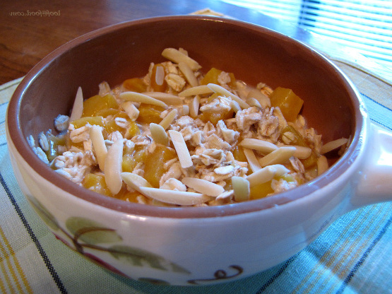 D’Australian BHandG Diabetic Living.Must doit admettre que ce n’est pas un grand fan de canneberges, mais qu’il va certainement essayer l’alternative de pêches et d’amandes (poster à la fin des instructions). laiterie avec des desserts au yaourt) Je suggère d’utiliser un yaourt à la vanille faible en gras ou sans gras, bien que Fruche soit un dessert fixe.
