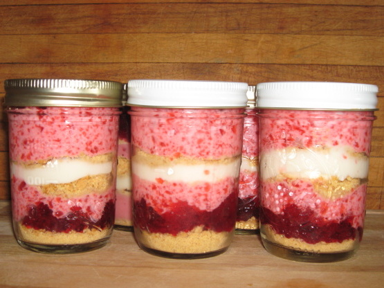 Je l'ai fait comme la recette de parfaits. Encore une fois avec les pots que je pense est une bonne idée. Emmenez-les n'importe où et ne vous inquiétez pas pour eux. Bien sûr, vous pouvez également utiliser des verres à parfait. Ce sont bons et semblent remplir aussi.