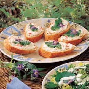 Incorporer le poivron rouge et la carotte.Étaler sur le pain.Garnir de feuilles de bourrache et de fleurs, au choix.
