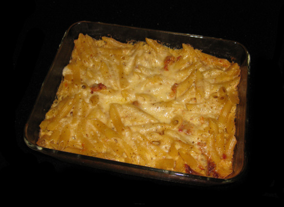 Un moyen rapide et savoureux de préparer des pâtes cuites au four sans qu'il soit nécessaire de les faire bouillir au préalable. N'hésitez pas à utiliser une variété de fromages - je viens d'utiliser ce que je garde normalement sous la main, mais une variété de Gruyère, Romano, Mozzarella serait d'excellents substituts pour le mélange mexicain. Essayez également avec du poulet en cubes ajouté au mélange.