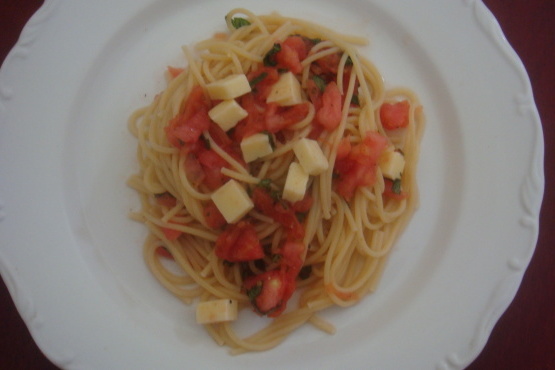 Mélanger les pâtes chaudes dans le bol avec le mélange de tomates fraîches, ajouter la mozzarella, puis mélanger à nouveau. Ajouter de l’eau de pâtes si nécessaire.